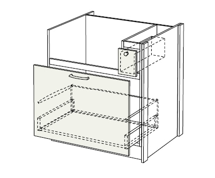 コンロキャビネット 引出しタイプ W60cm 台輪60mm(フィラーなし)