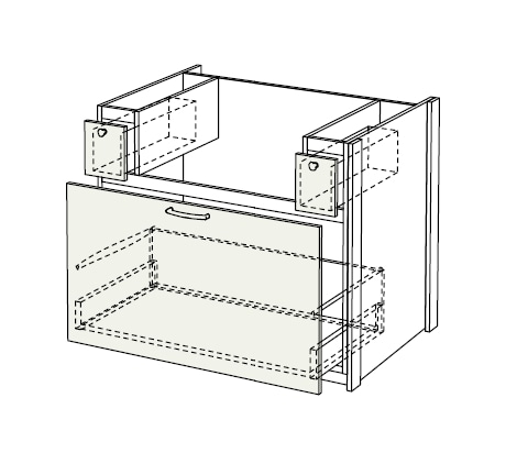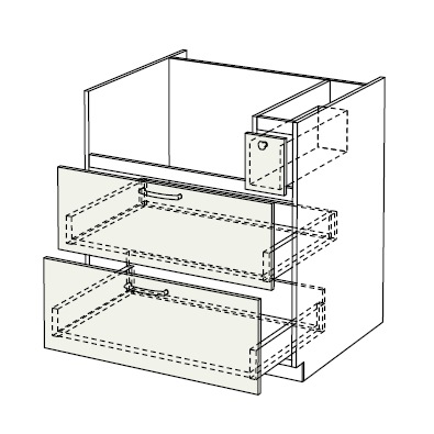コンロキャビネット 引出しタイプ W75cm 台輪110mm(フィラーなし)