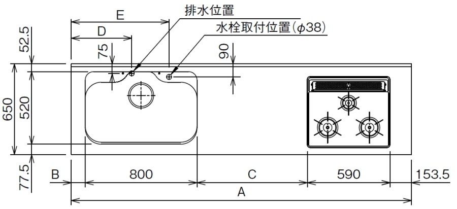 ステンレスカウンタートップⅠ型(IK・IBシンク)D=650