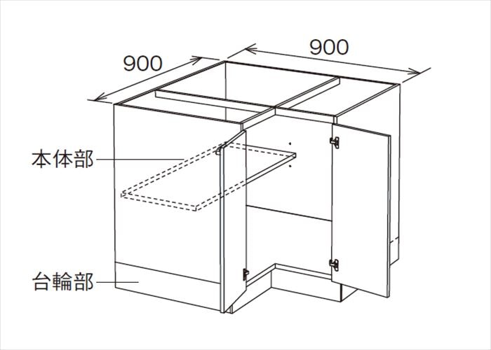 コーナーキャビネット 開き扉タイプ用 JBCLT-90_L/R