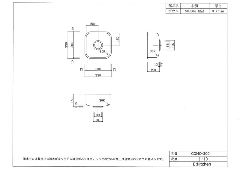 外寸W330xD330xH150(mm)