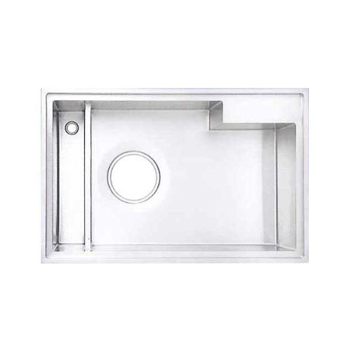 形状:コーナー部を小Rとした直線的フォルム。プレス加工のステンレスシンクでは不可能なフォルムを造り上げました。