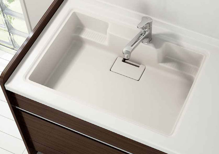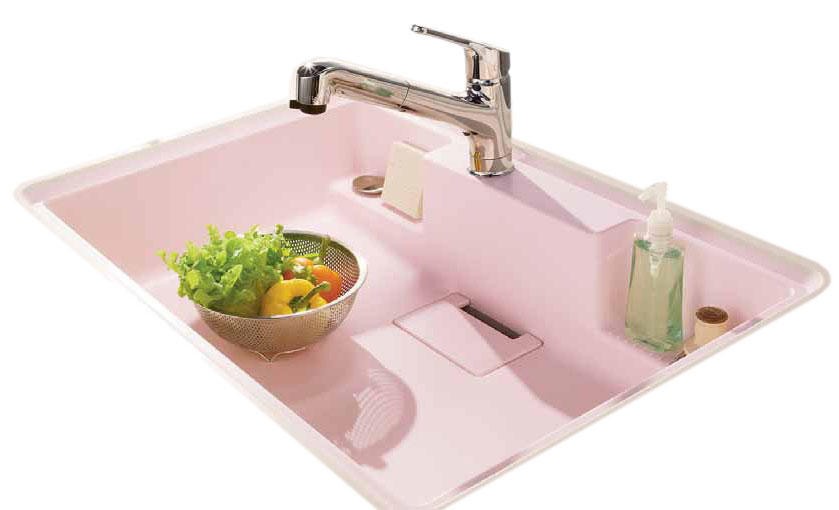 ハイパーシンクで機能とデザインの両方を手に入れたキッチンカウンターを実現。気持ちのよい使い心地と機能性の高さを追及し、高機能素材「クリスタルサーフェース」でインテリアになじむモダンなスクエアシンクを作りました。810型はスクエア形状でお手入れが簡単な一体成形の排水口で浅型のごみカゴにも対応。ざるなどの一時置きにも便利なローデッキプレート他、オプションを取り揃えています。